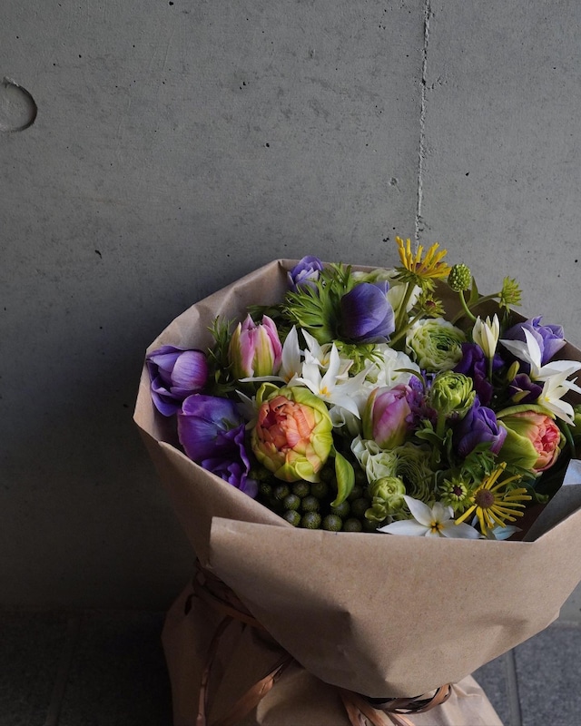 春の代表的な花を束ねました。 チューリップアネモネラナンキュラスなど.... 新鮮で質のいい花材をセレクトしております。 ※1月~4月頃限定商品 Size 約W:30cm H:40cm ※写真はお色味のイメージとなります。 ※季節によって花材を変更させていただきます。 ※遠方への配送をご希望の場合は宅配サイズの関係上、写真とはサイズ感が異なる場合があります ・お日にち ・お届け先 ・お祝いカード・札 ご相談ください。