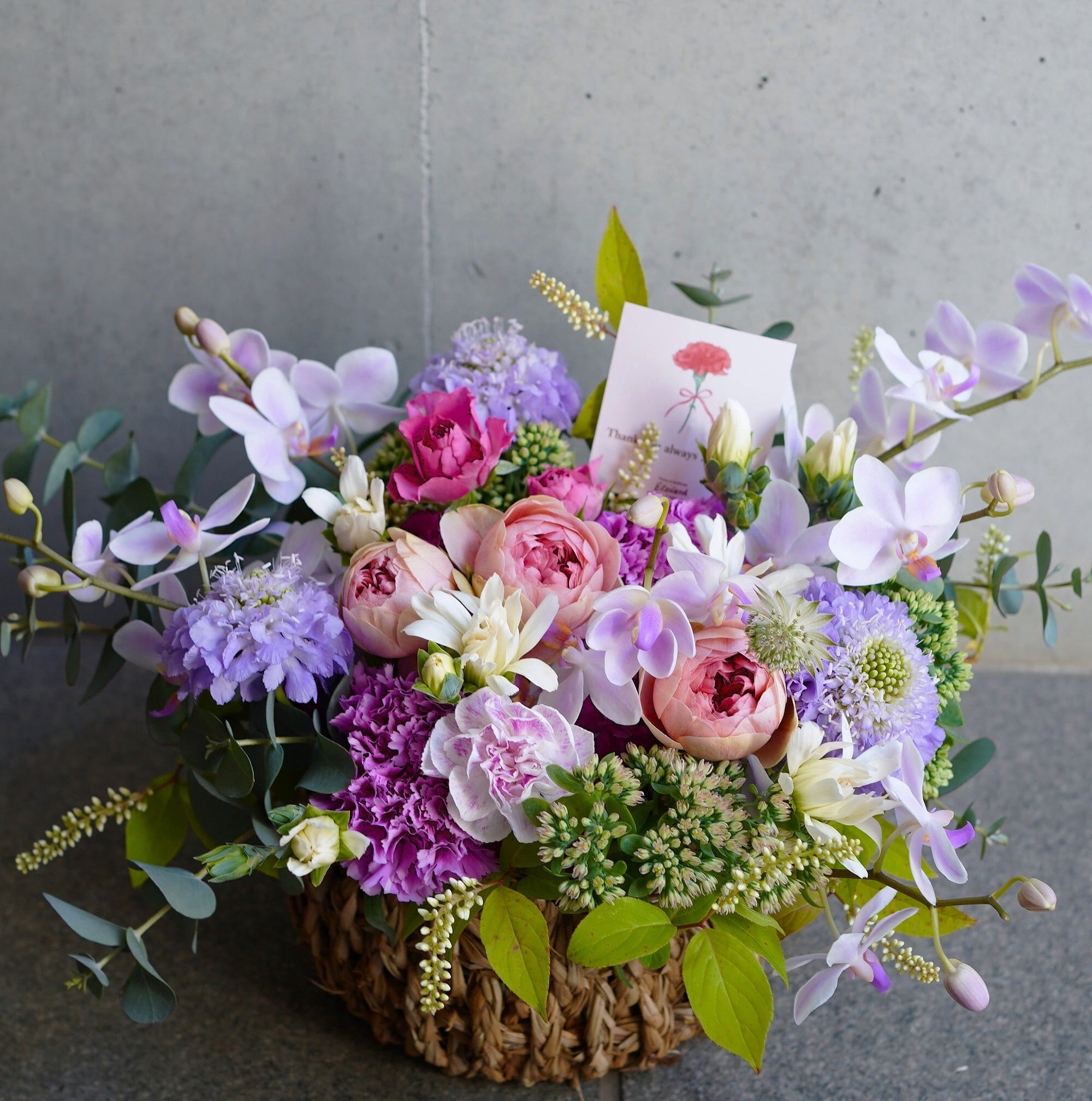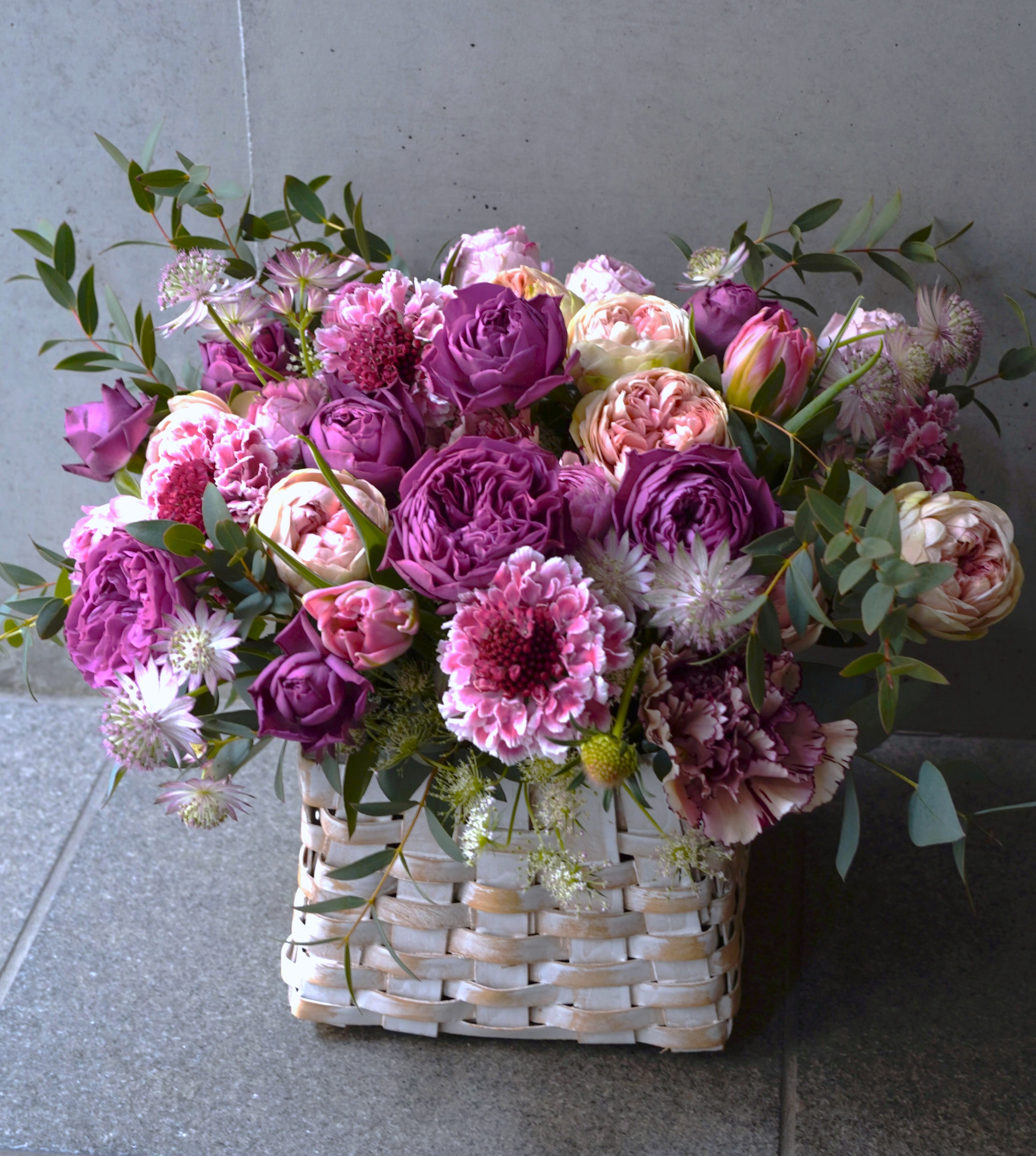 ・アレンジメントの器は指定できません、お花に合わせてセレクトしております。
