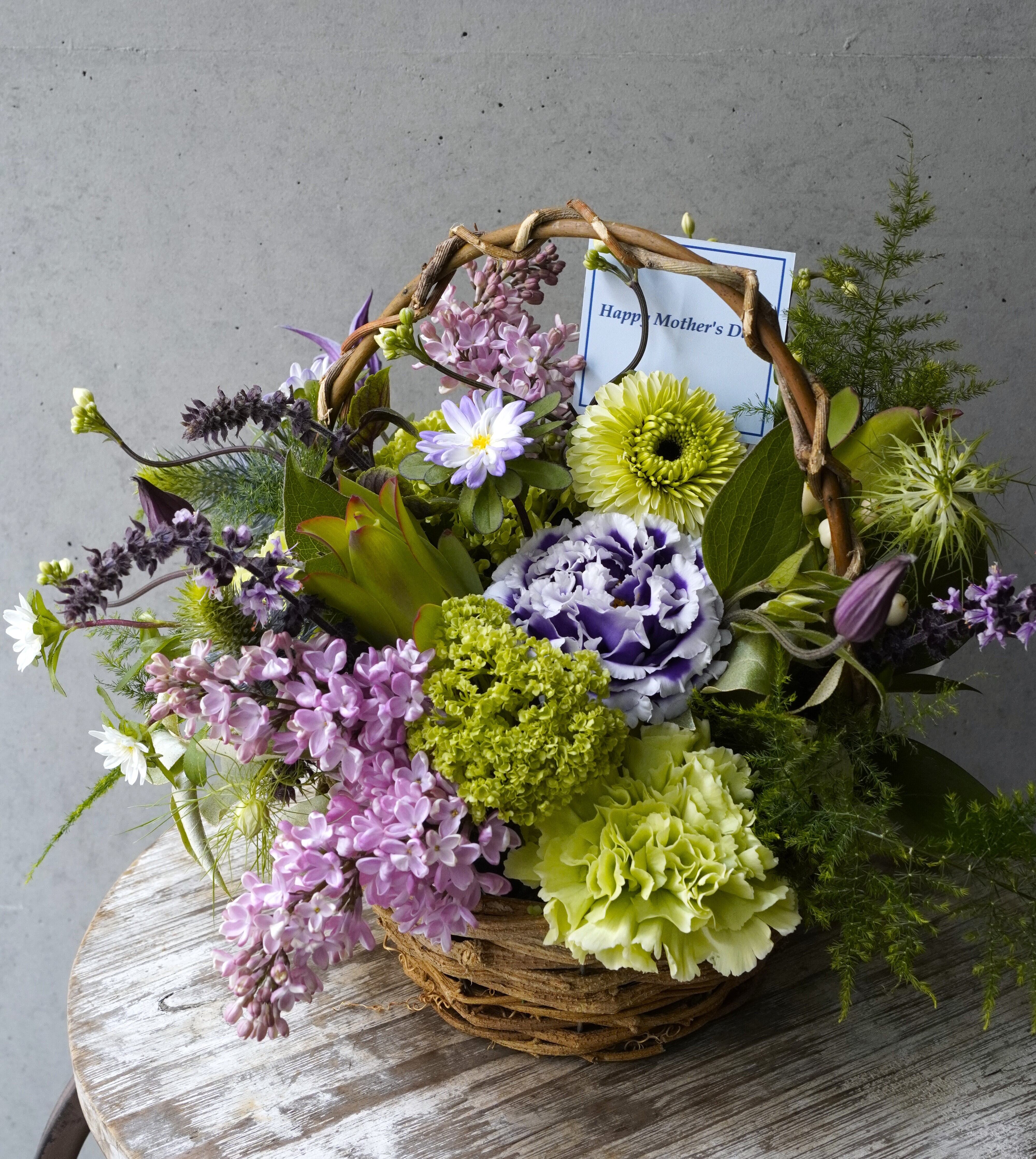 ・アレンジメントの器は指定できません、お花に合わせてセレクトしております。